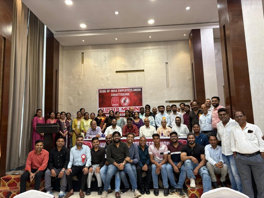 बैंक ऑफ इंडिया एम्प्लॉयज़ यूनियन, छत्तीसगढ़ के वेस्टर्न हब की क्लस्टर मीटिंग सोमवार को होटल सेंट्रल पार्क में आयोजित की गई। बैठक में यूनियन पदाधिकारियों ने सरकार और प्रबंधन की कर्मचारी विरोधी नीतियों की कड़ी आलोचना करते हुए बैंक कर्मियों को आगामी चुनौतियों के लिए तैयार रहने का आह्वान किया।