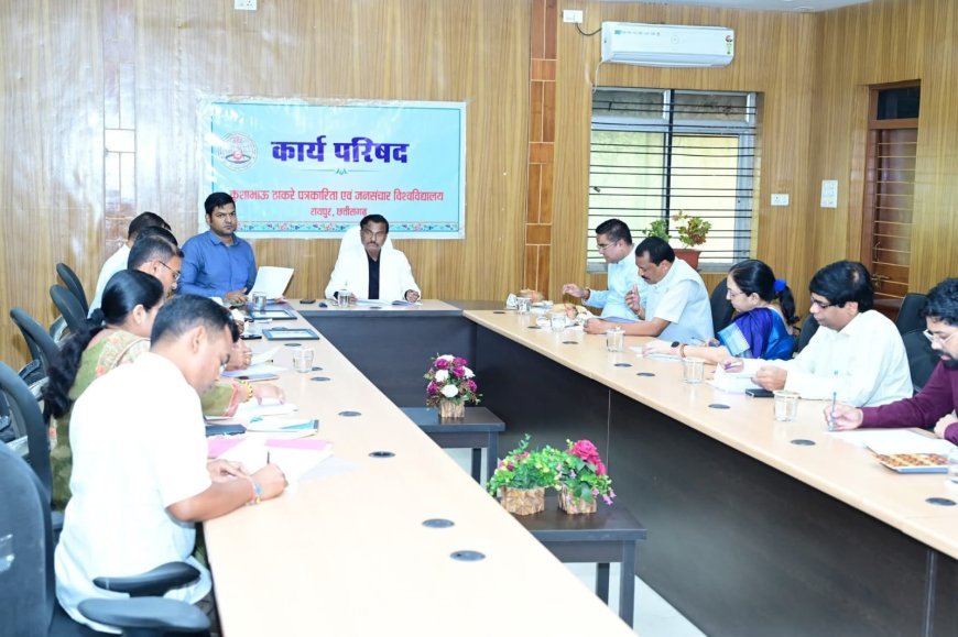 रायपुर में आज सम्पन्न विश्वविद्यालय कार्य परिषद् बैठक में 62वीं बैठक में लिये गये निर्णयों का पालन प्रतिवेदन, एक लाख से अधिक राशि के भुगतान का कार्योत्तर अनुमोदन, विश्वविद्यालय के प्रशासनिक एवं अध्ययनशालाओं के कार्यालयीन उपयोग हेतु 2 लैपटॉप एवं 5 कंप्यूटर सिस्टम क्रय करने की प्रशासकीय स्वीकृति, चुनौती मूल्यांकन के संबंध में गठित उपसमिति द्वारा प्रस्तुत प्रतिवेदन का अनुमोदन, षष्ठम् दीक्षांत समारोह आयोजन के संबंध में चर्चा हुई। विश्वविद्यालय के प्रशासनिक भवन के कॉन्फ्रेंस हॉल में कुलपति महादेव कावरे (भा.प्र.से.) की अध्यक्षता में बैठक में सभी कार्य परिषद् सदस्यों‌ का स्वागत किया गया।